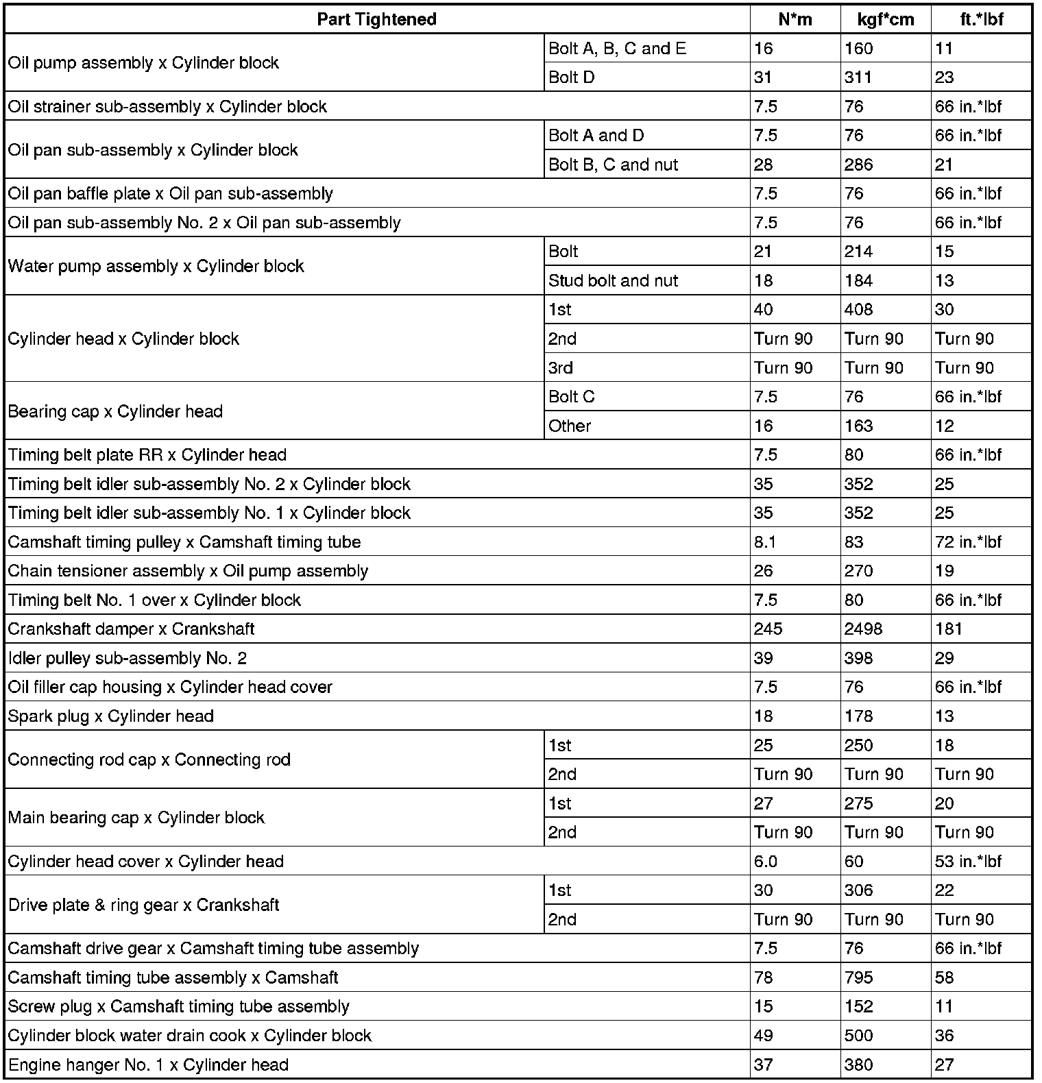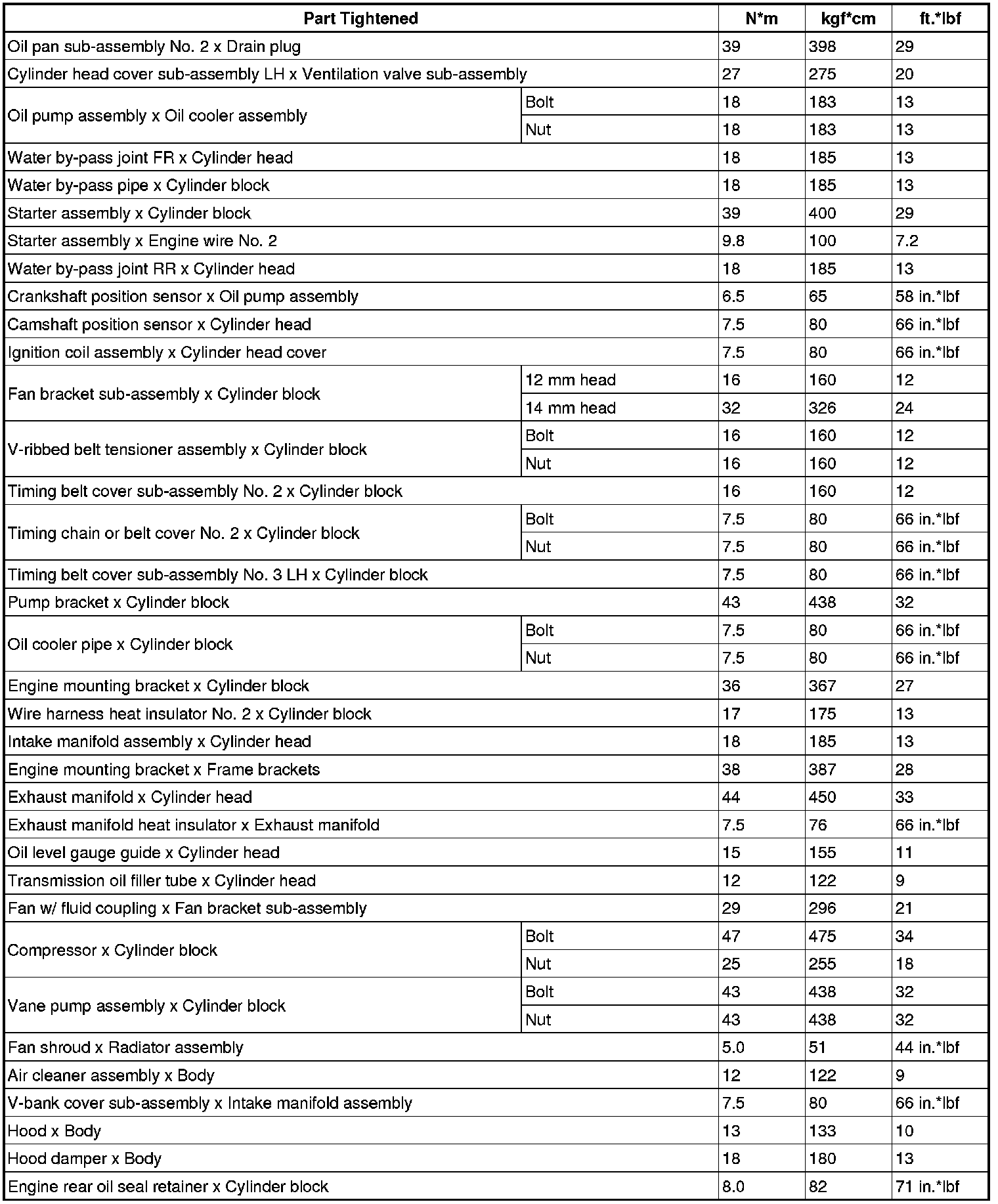 SERVICE SPECIFICATIONS: 2UZ-FE ENGINE MECHANICAL: TORQUE SPECIFICATIONS