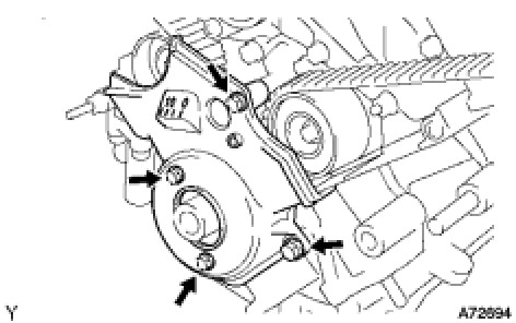 Install the timing chain or belt cover with the nut and 3 bolts.