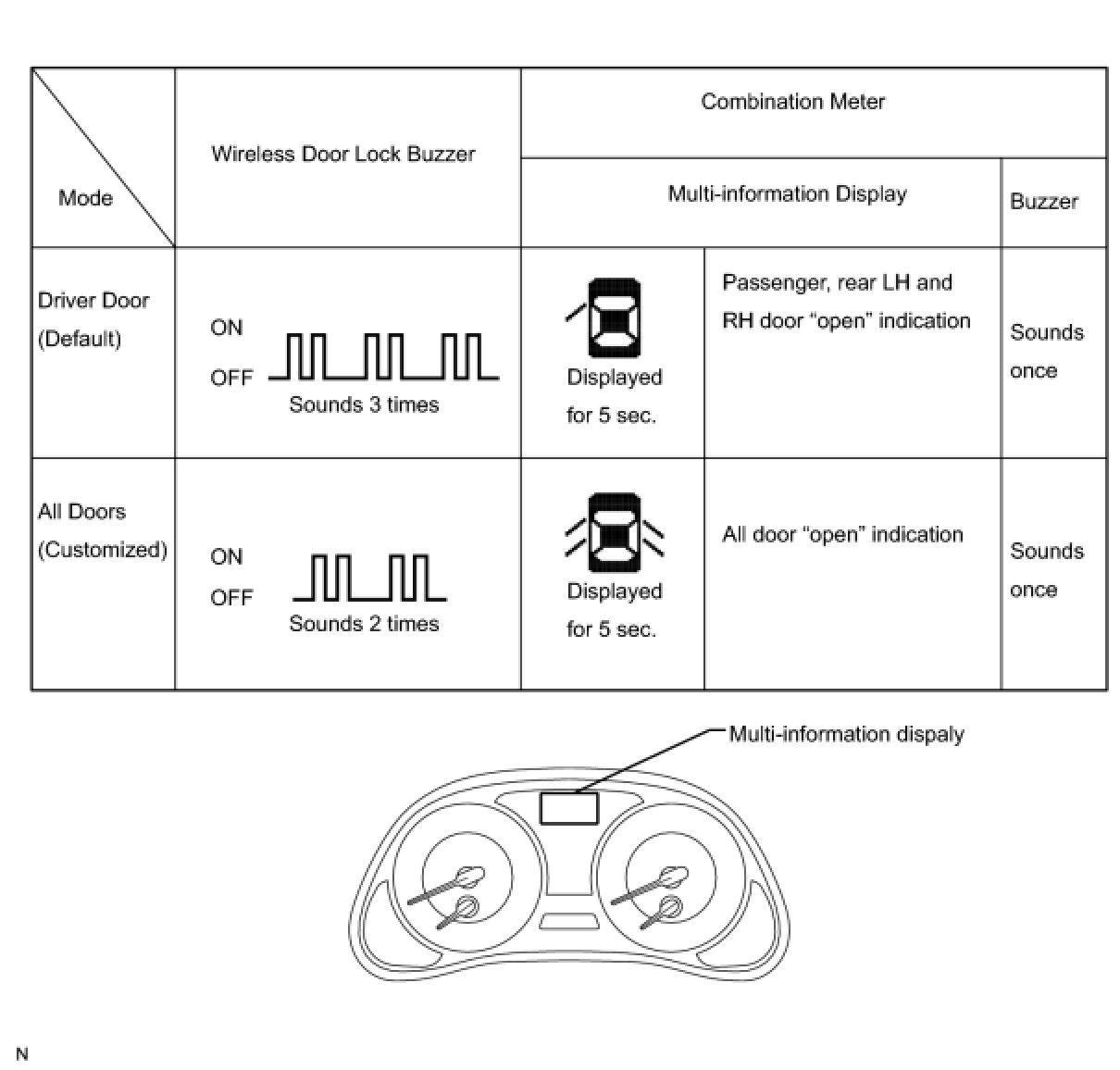 (c) The certification ECU sounds the buzzers of the wireless door lock buzzer and combination meter to inform the user that the mode has been changed.