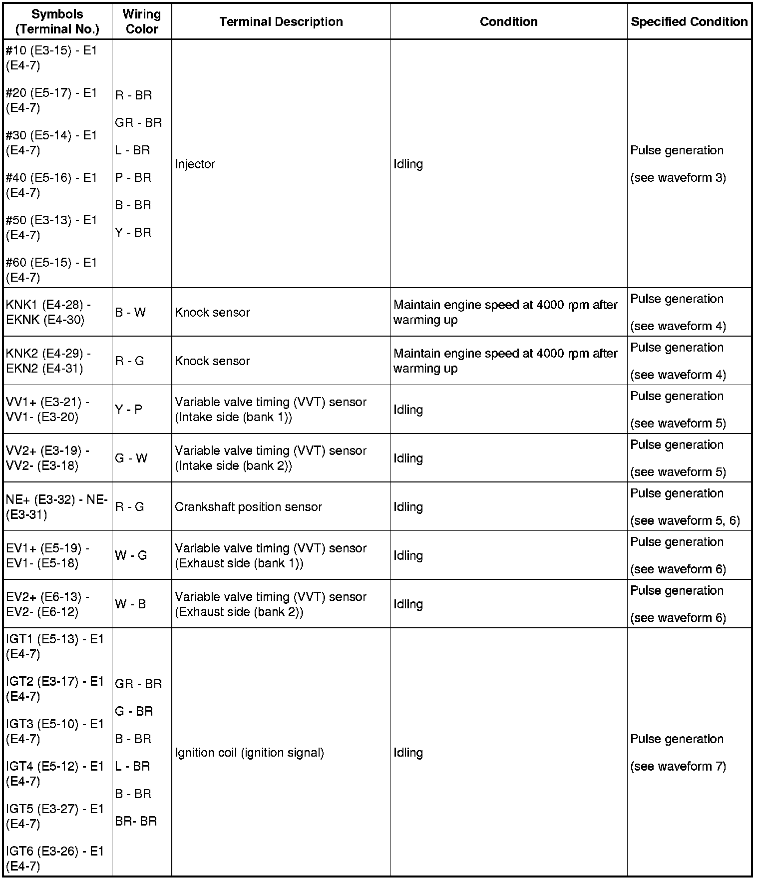 Home >> Lexus >> 2009 >> IS 250 AWD V6-2.5L (4GR-FSE) >> Repair and Diagnosis >> Powertrain Management >> Computers and Control Systems >> Engine Control Module >> Testing and Inspection >> Pinout Values and Diagnostic Parameters
