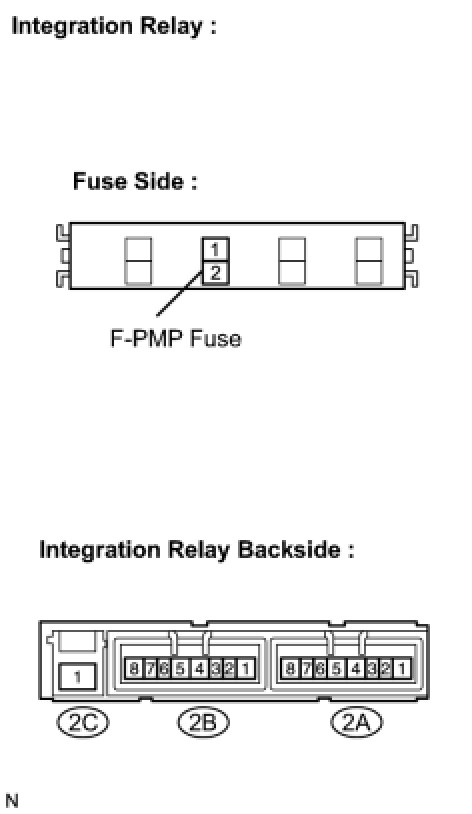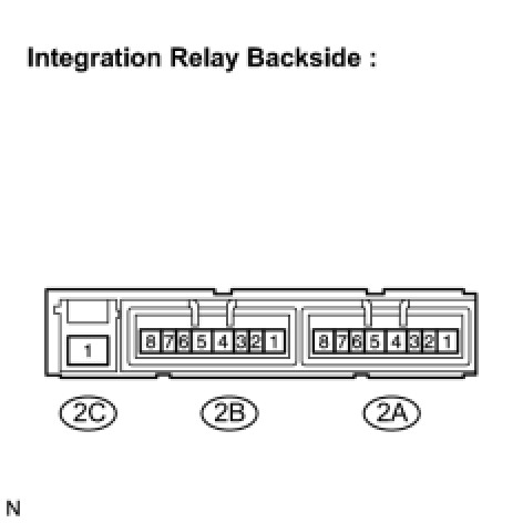 - The internal circuit of the integration relay is as shown in the illustration. Inspect the integration relay using the following procedures.