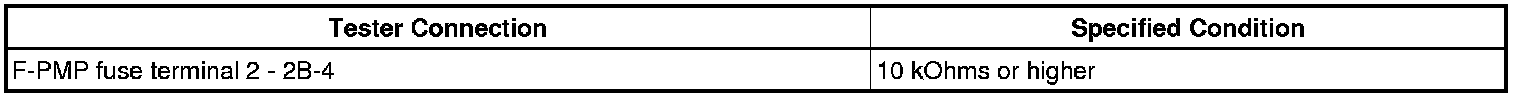 (1) Remove the F/PMP fuse. Using an ohmmeter, measure the resistance between the terminals.