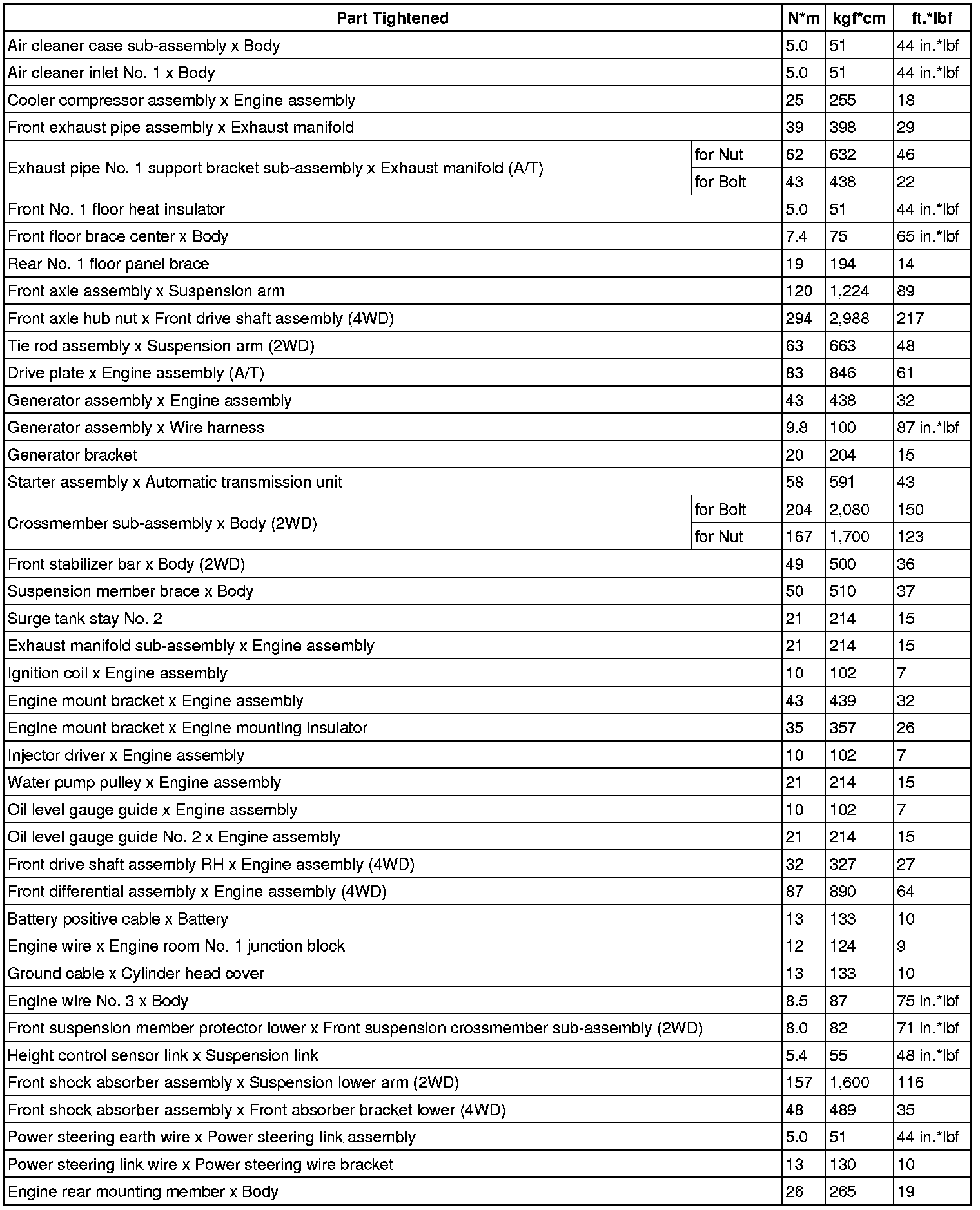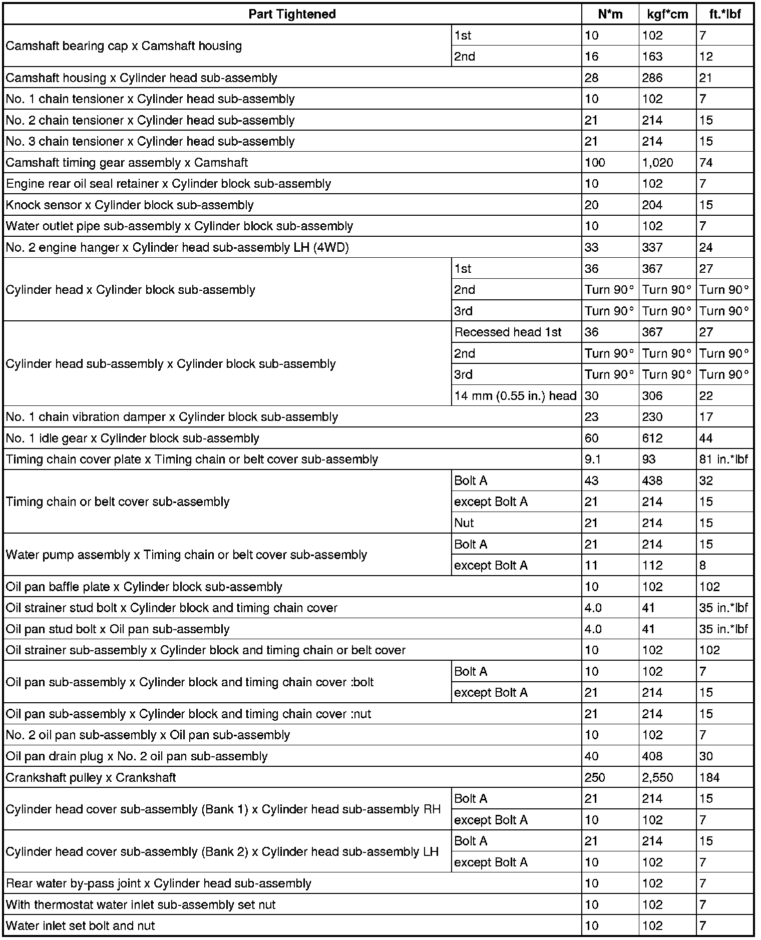 Home >> Lexus >> 2009 >> IS 250 AWD V6-2.5L (4GR-FSE) >> Repair and Diagnosis >> Specifications >> Mechanical Specifications >> Engine >> System Specifications >> Torque Specifications