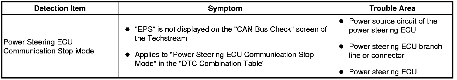 CAN COMMUNICATION: CAN COMMUNICATION SYSTEM: Power Steering ECU Communication Stop Mode