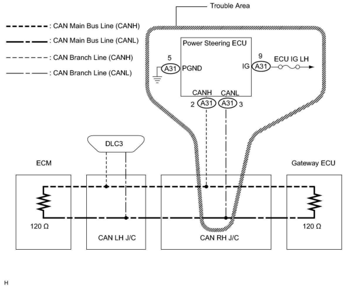 NG -- REPAIR OR REPLACE POWER STEERING ECU BRANCH WIRE OR CONNECTOR (CANH, CANL)