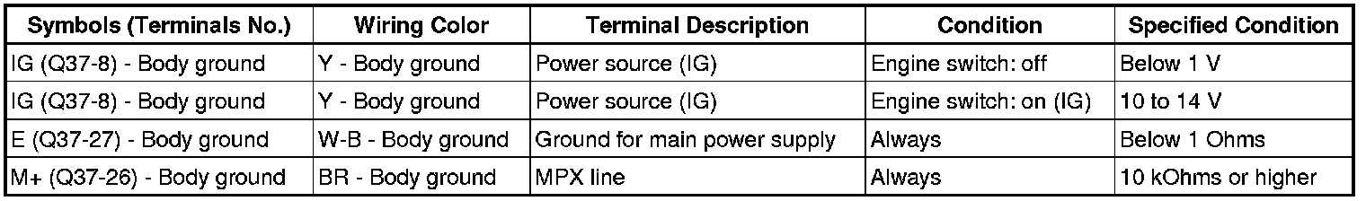 If the result is not as specified, there may be a malfunction on the wire harness side.