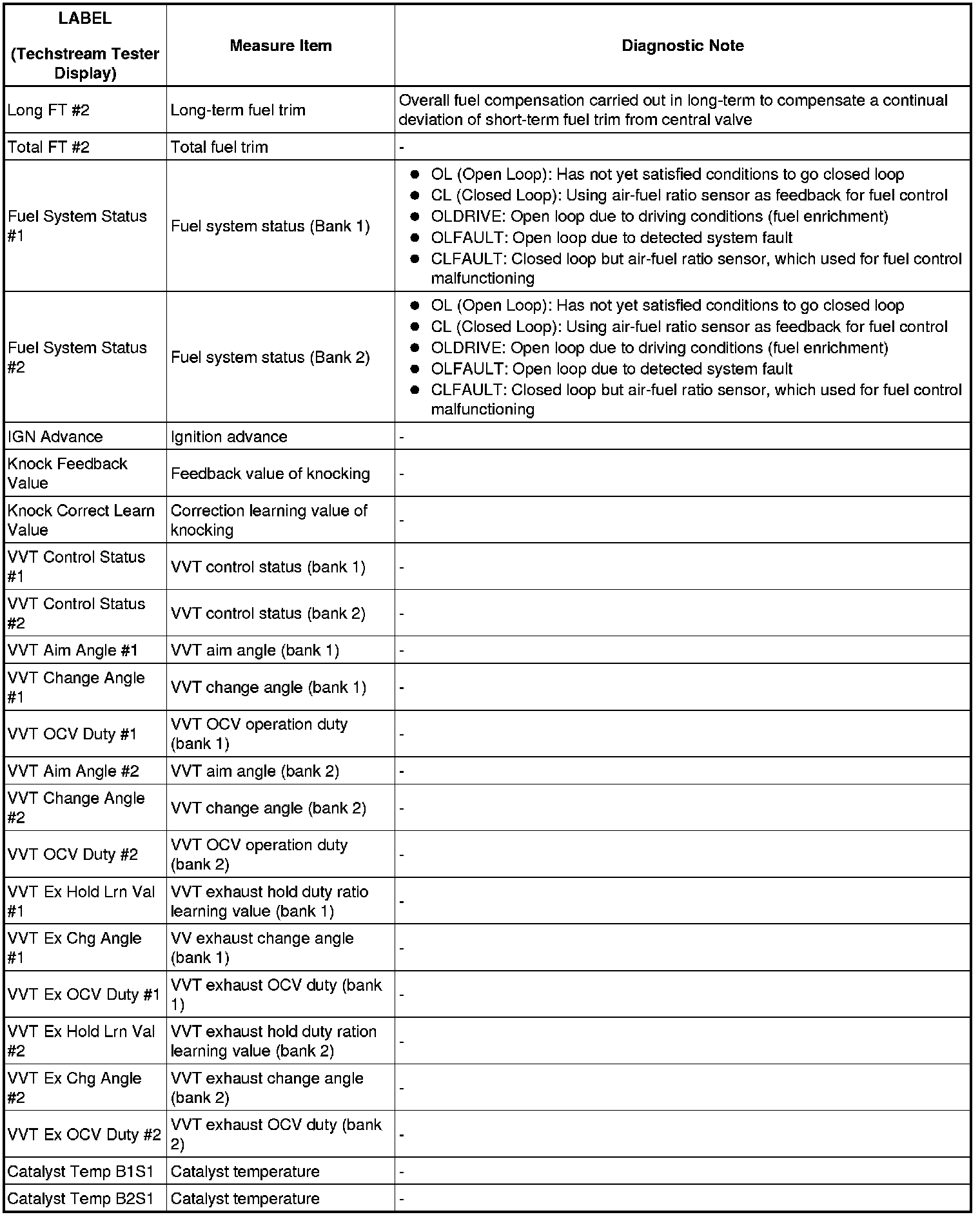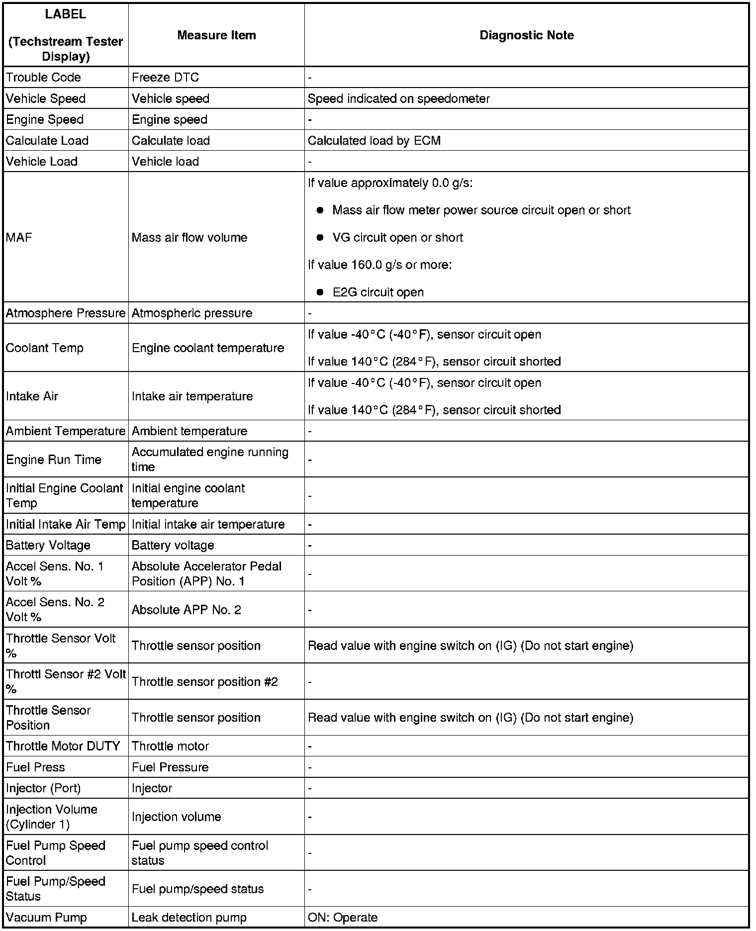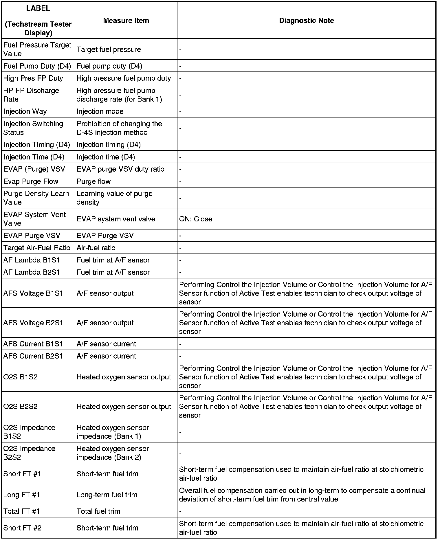 2GR-FSE ENGINE CONTROL SYSTEM: SFI SYSTEM: FREEZE FRAME DATA