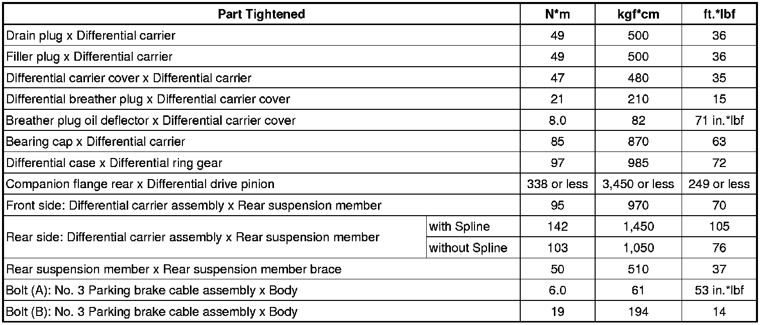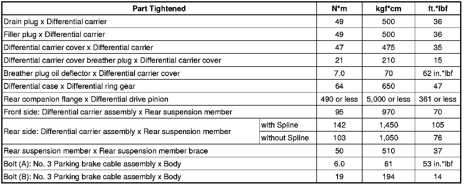 SERVICE SPECIFICATIONS: DIFFERENTIAL: TORQUE SPECIFICATIONS