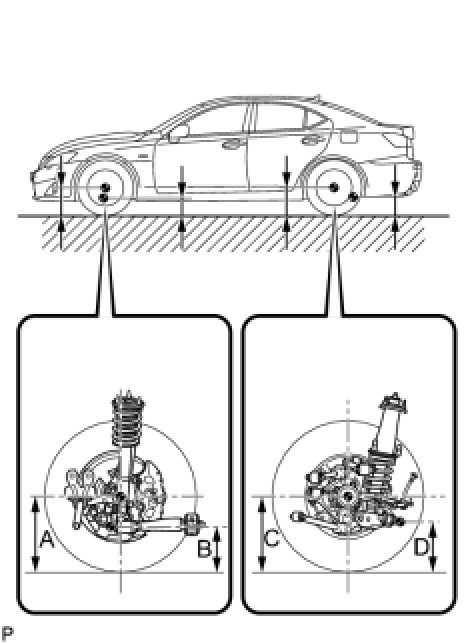 - Before inspecting the wheel alignment, adjust the vehicle height to the specified value.