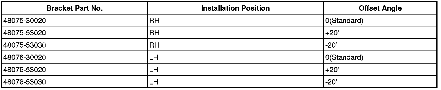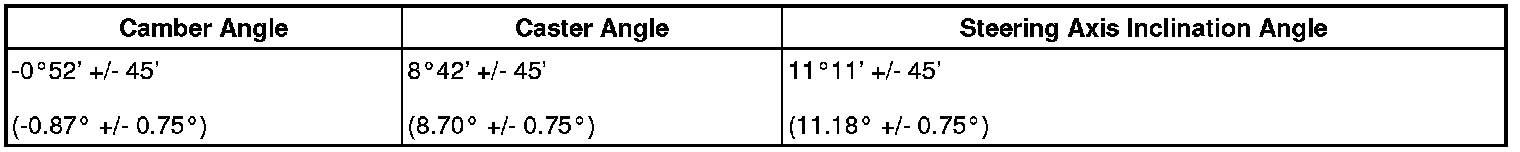 - The maximum tolerance of right and left difference for the camber and caster is 30' (0.5°) or less.