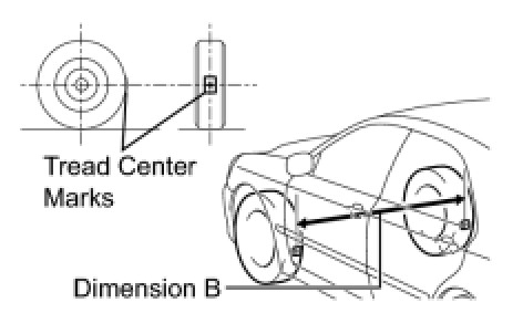 (d) Put tread center marks on the rear-most points of the front wheels and measure the distance between the marks (dimension B).