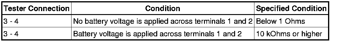 If the result is not as specified, replace the relay.