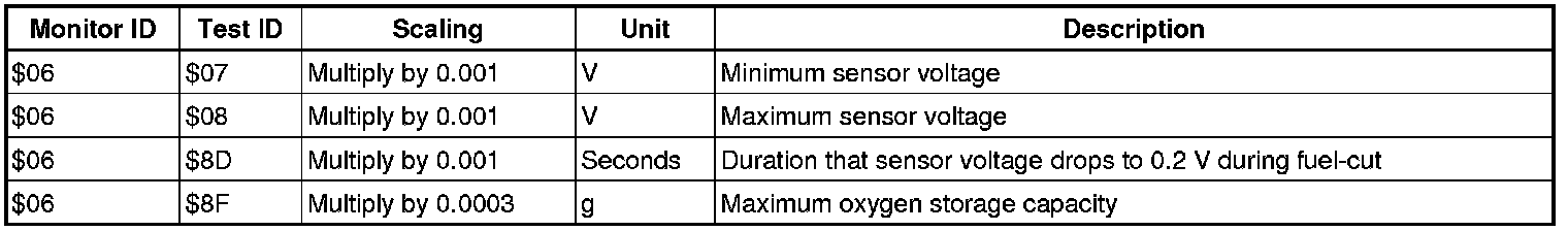 The purpose of the monitor result (mode 06) is to allow access to the results for on-board diagnostic monitoring tests of specific components/systems that are not continuously monitored. Examples are catalyst, evaporative emission (EVAP) and thermostat.