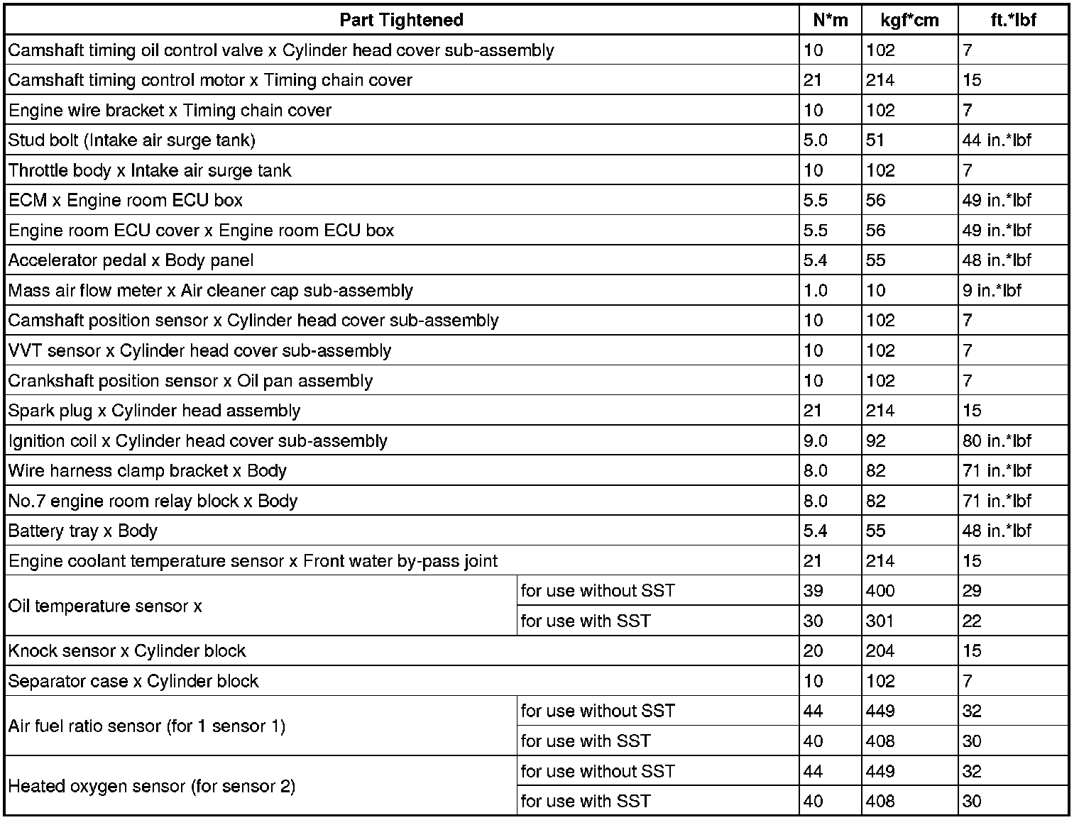 SPECIFICATIONS: 2UR-GSE ENGINE CONTROL: TORQUE SPECIFICATIONS