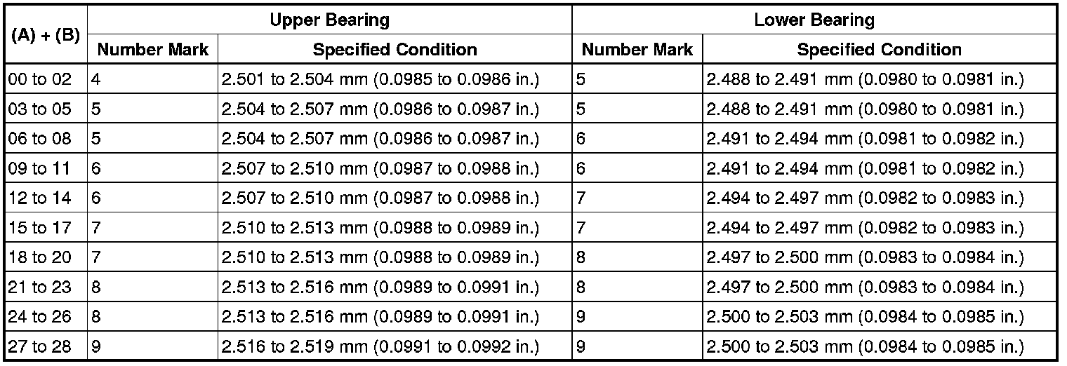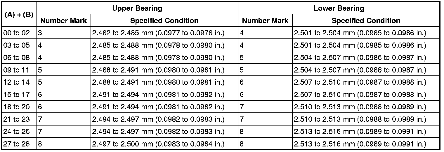 Standard Bearing Center Wall Thickness for No. 1 and No. 5 Journals: