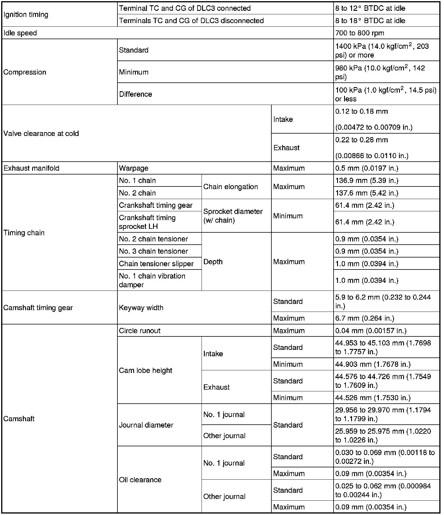 SPECIFICATIONS: 2UR-GSE ENGINE MECHANICAL: SERVICE DATA