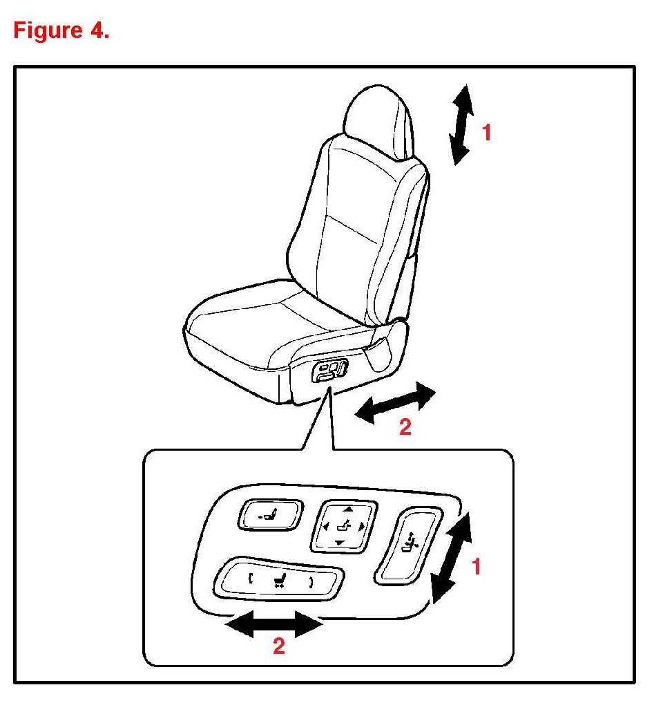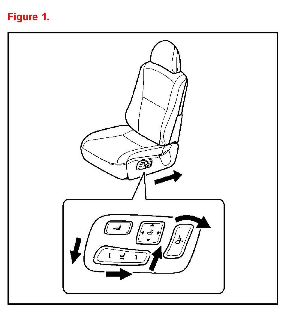 7. Operate the seat position control switch and check that the seat slides forward and rearward and that the beep is NOT heard. (Refer to 2 in figure 4.)