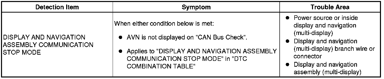 CAN COMMUNICATION: CAN COMMUNICATION SYSTEM: Display and Navigation Assembly Communication Stop Mode