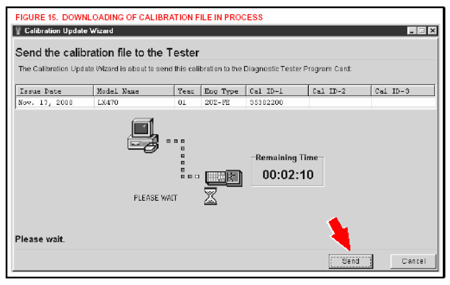 K. Confirm the calibration file to be sent to the Diagnostic Tester Program Card (Figure 14). Click SEND.