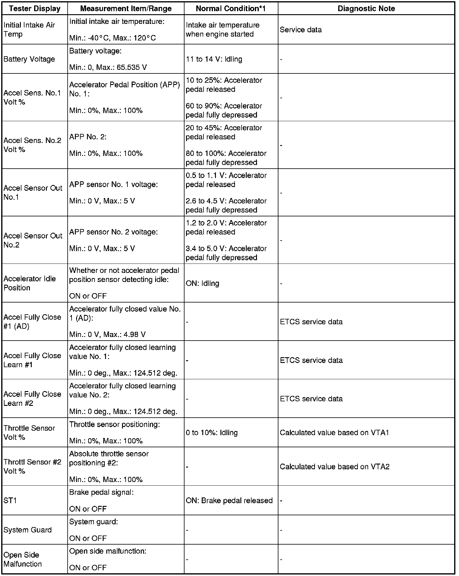 HINT: Using the Techstream to read the Data List allows the values or states of switches, sensors, actuators and other items to be read without removing any parts. This non-intrusive inspection can be very useful because intermittent conditions or signals may be discovered before parts or wiring is disturbed.