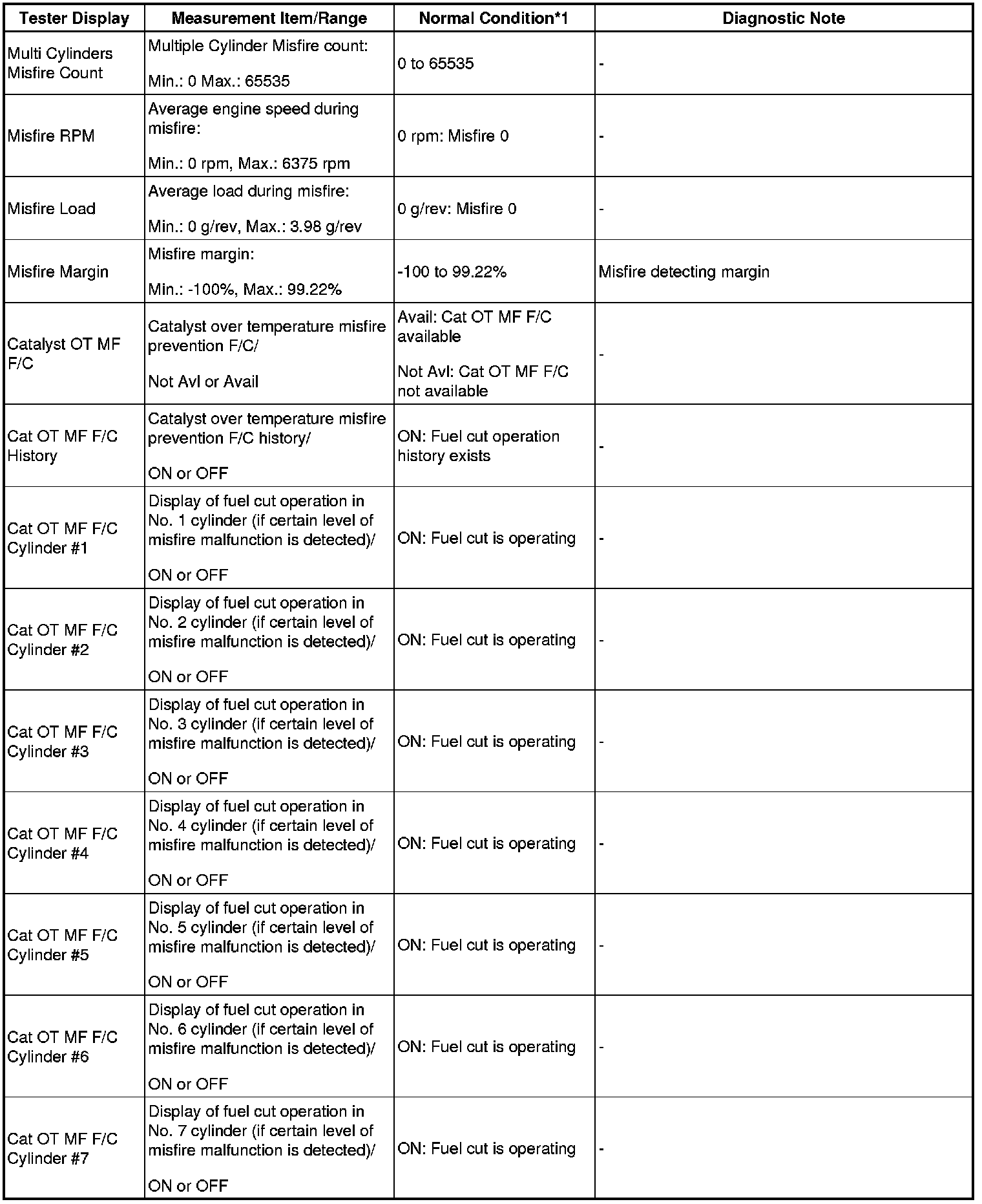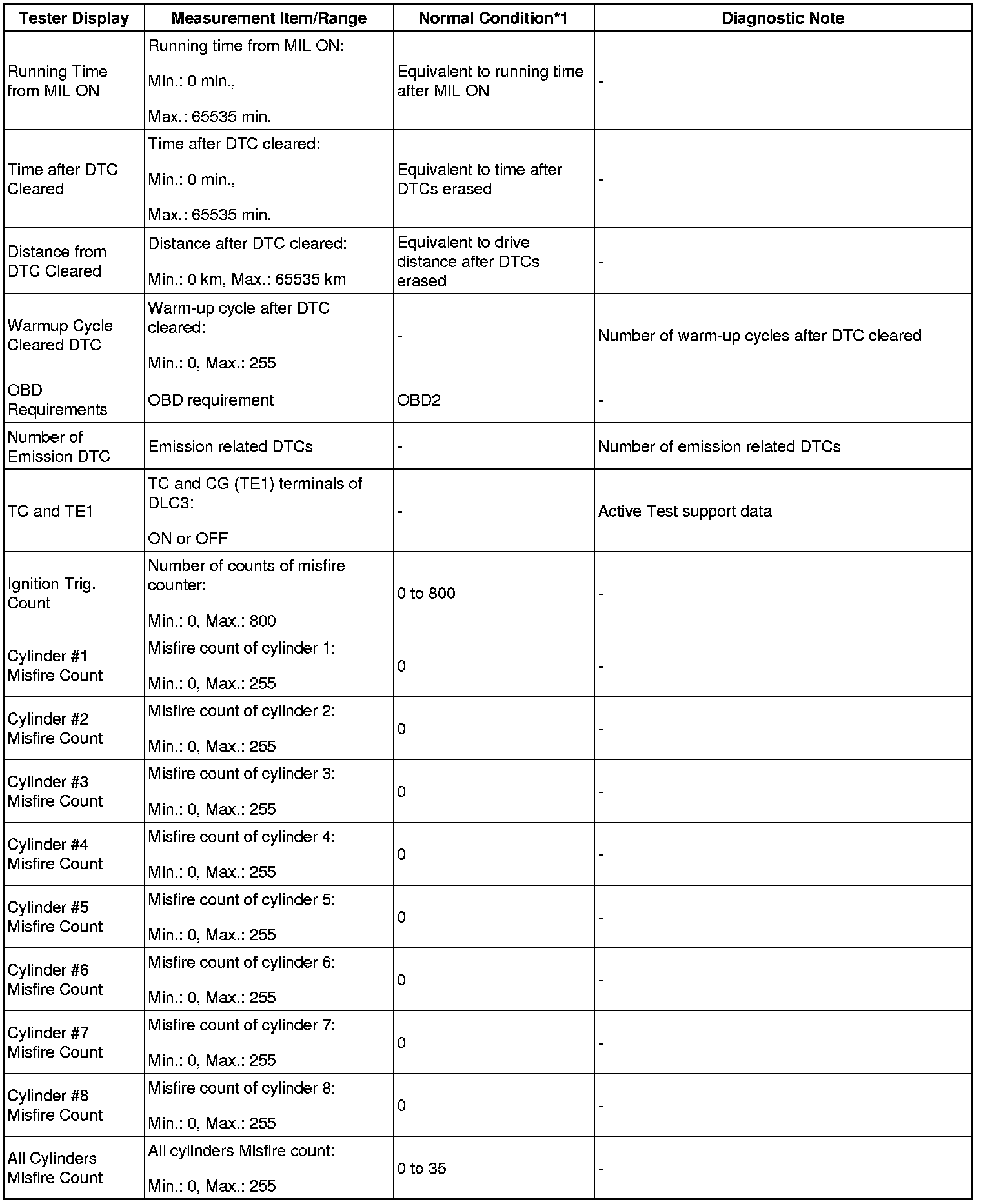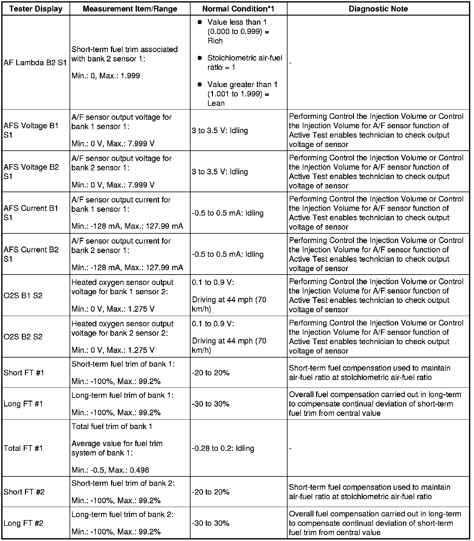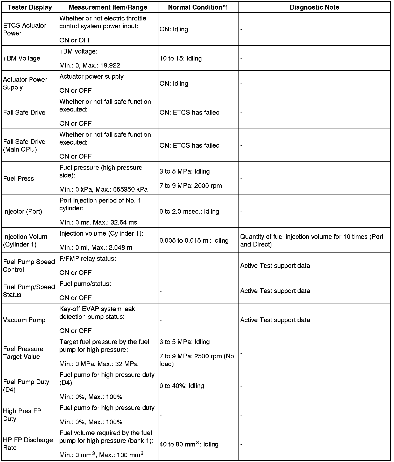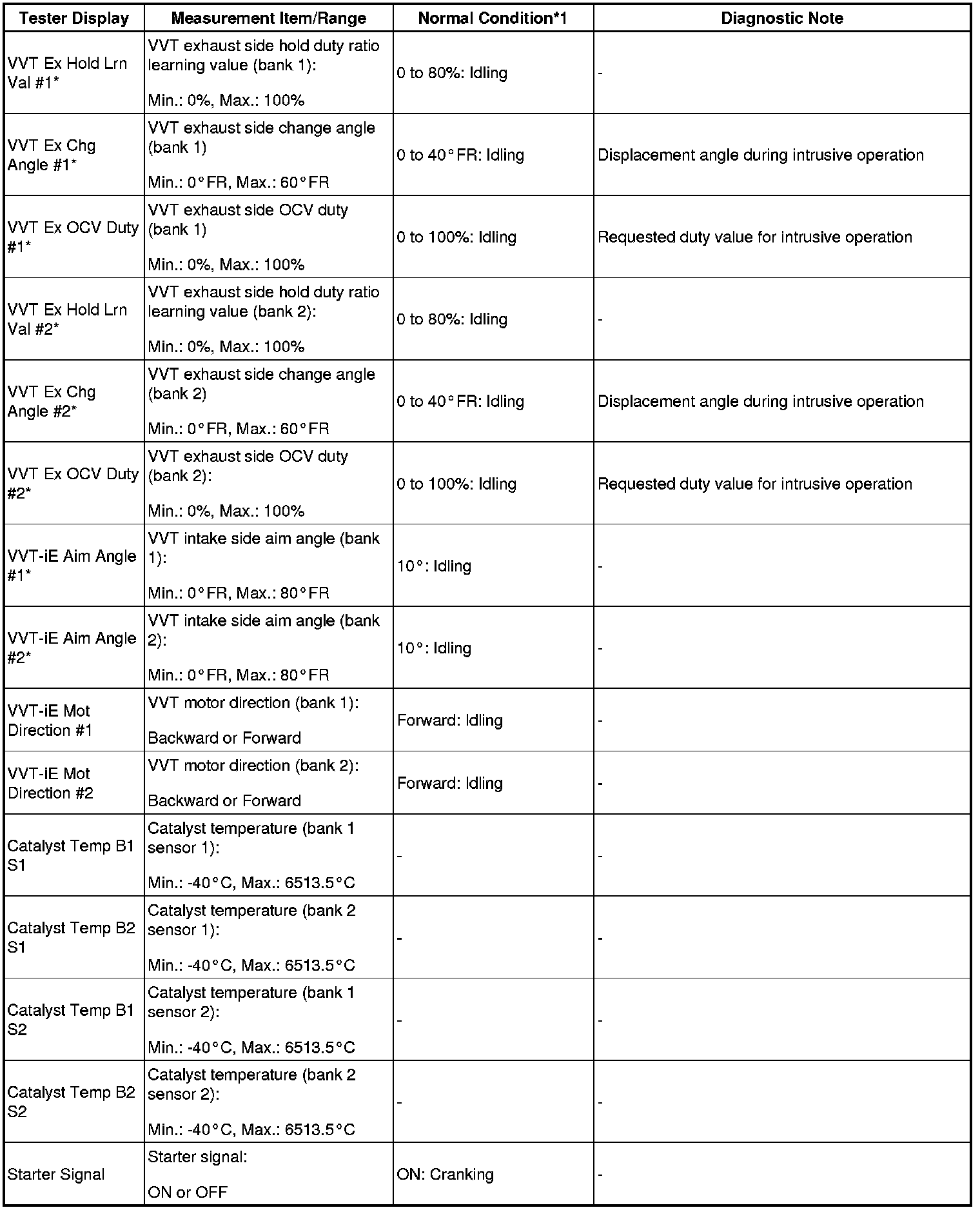 - *: Data List values are only displayed when performing the following Active Tests: Control the VVT-iE Linear (Bank1), Control the VVT-iE Linear (Bank2), Control the Exhaust Linear (Bank1) and Control the Exhaust Linear (Bank2). For other Active Tests, the Data List value will be 0.