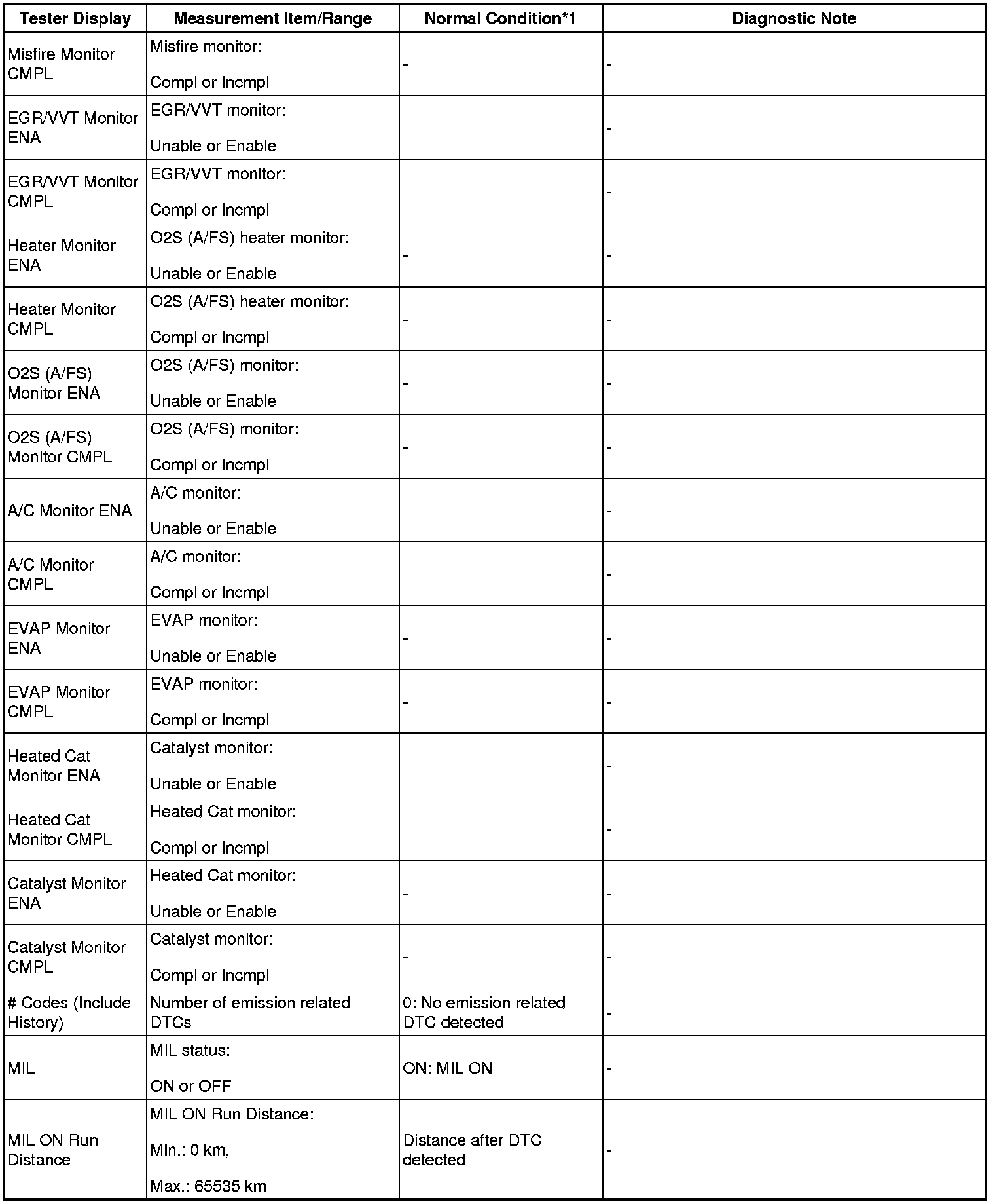 In the table below, the values listed under Normal Condition are reference only. Do not depend solely on these values when determining whether or not a part is faulty.