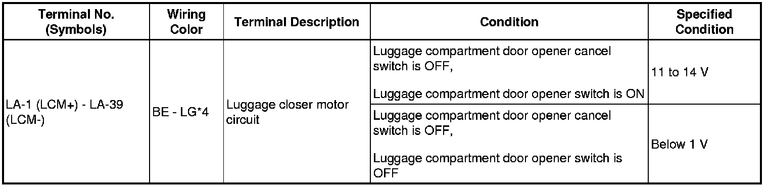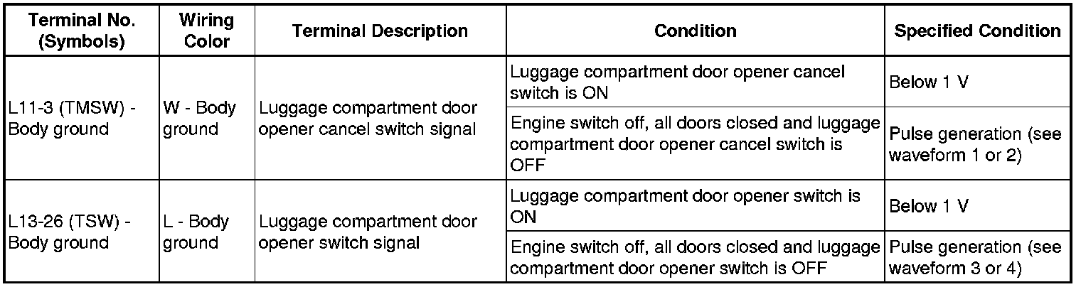 ENGINE HOOD / DOOR: LUGGAGE COMPARTMENT DOOR OPENER SYSTEM: TERMINALS OF ECU