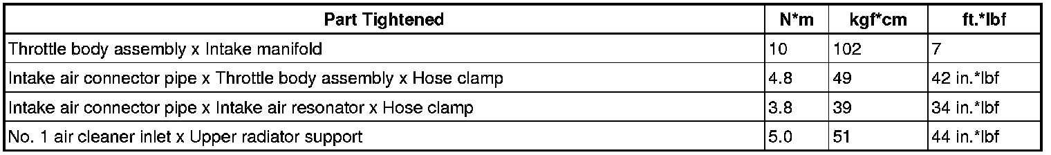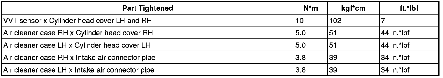 SERVICE SPECIFICATIONS: 1UR-FSE ENGINE CONTROL SYSTEM: TORQUE SPECIFICATIONS