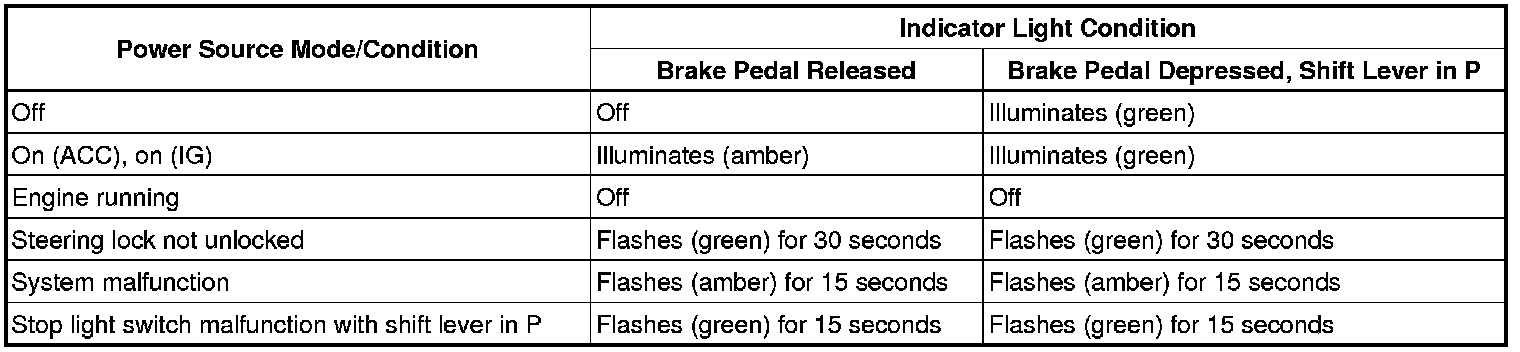 The engine switch condition (power source mode) or system malfunctions can be checked by observing the status of the engine switch indicator light.