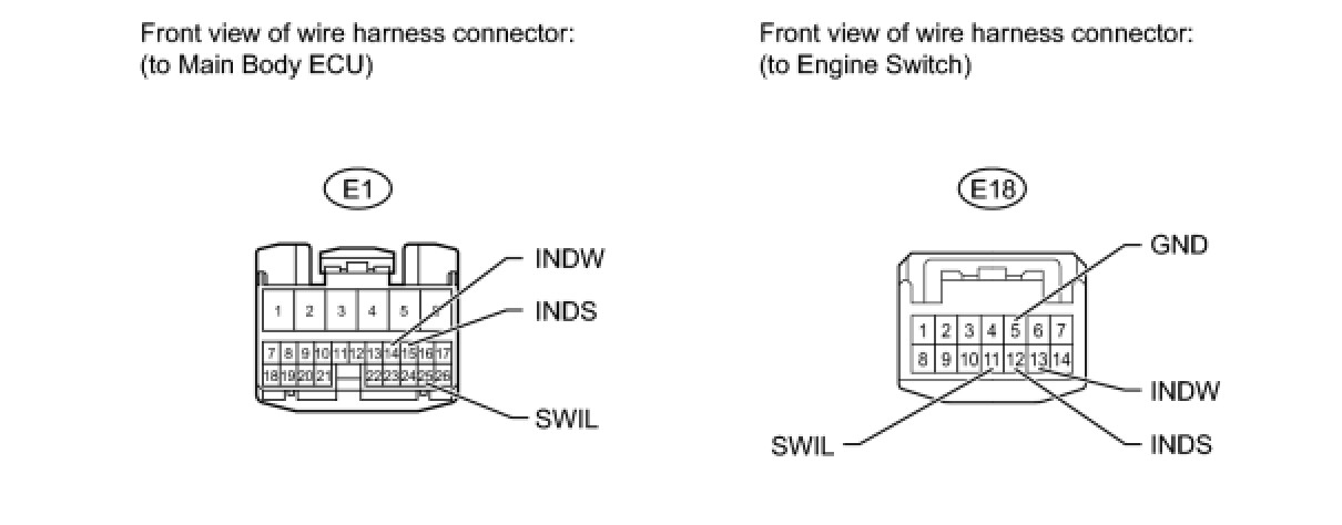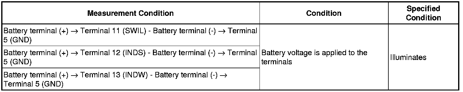 (b) Apply battery voltage to the terminals of the engine switch, and check the illumination condition of the engine switch indicator light.