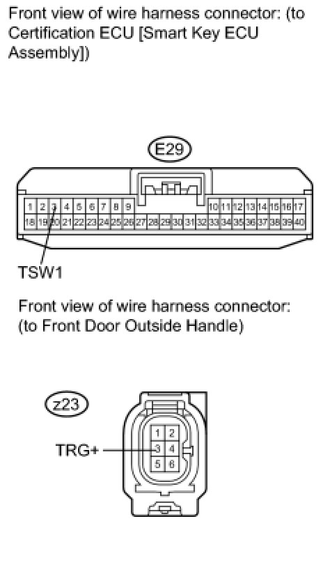 4. CHECK HARNESS AND CONNECTOR (CERTIFICATION ECU [SMART KEY ECU ASSEMBLY] - FRONT DOOR OUTSIDE HANDLE)