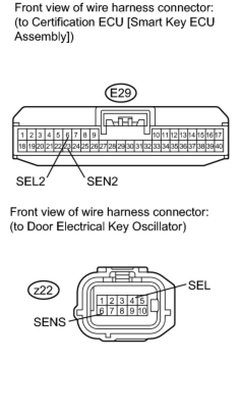NG -- CHECK HARNESS AND CONNECTOR (CERTIFICATION ECU [SMART KEY ECU ASSEMBLY] - DOOR ELECTRICAL KEY OSCILLATOR)