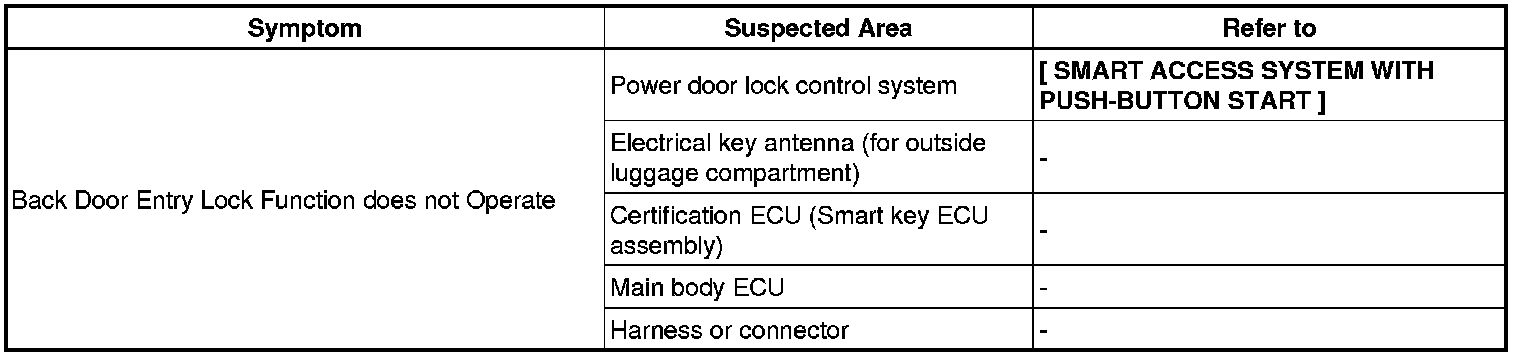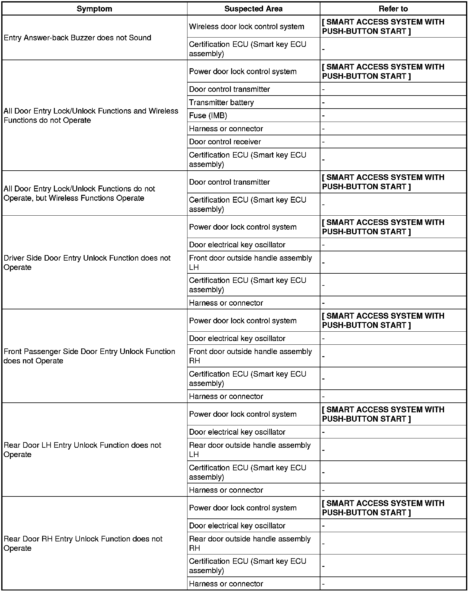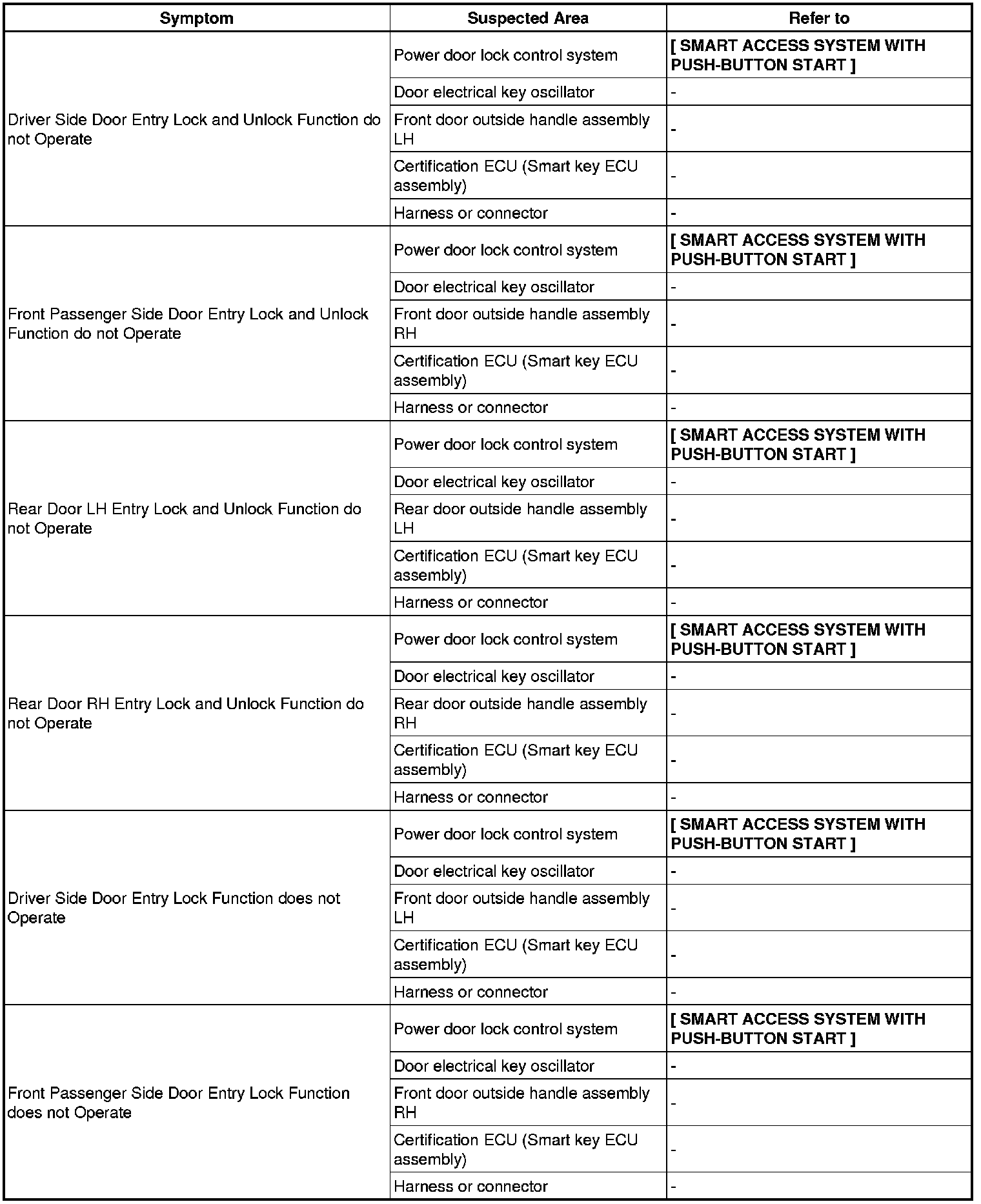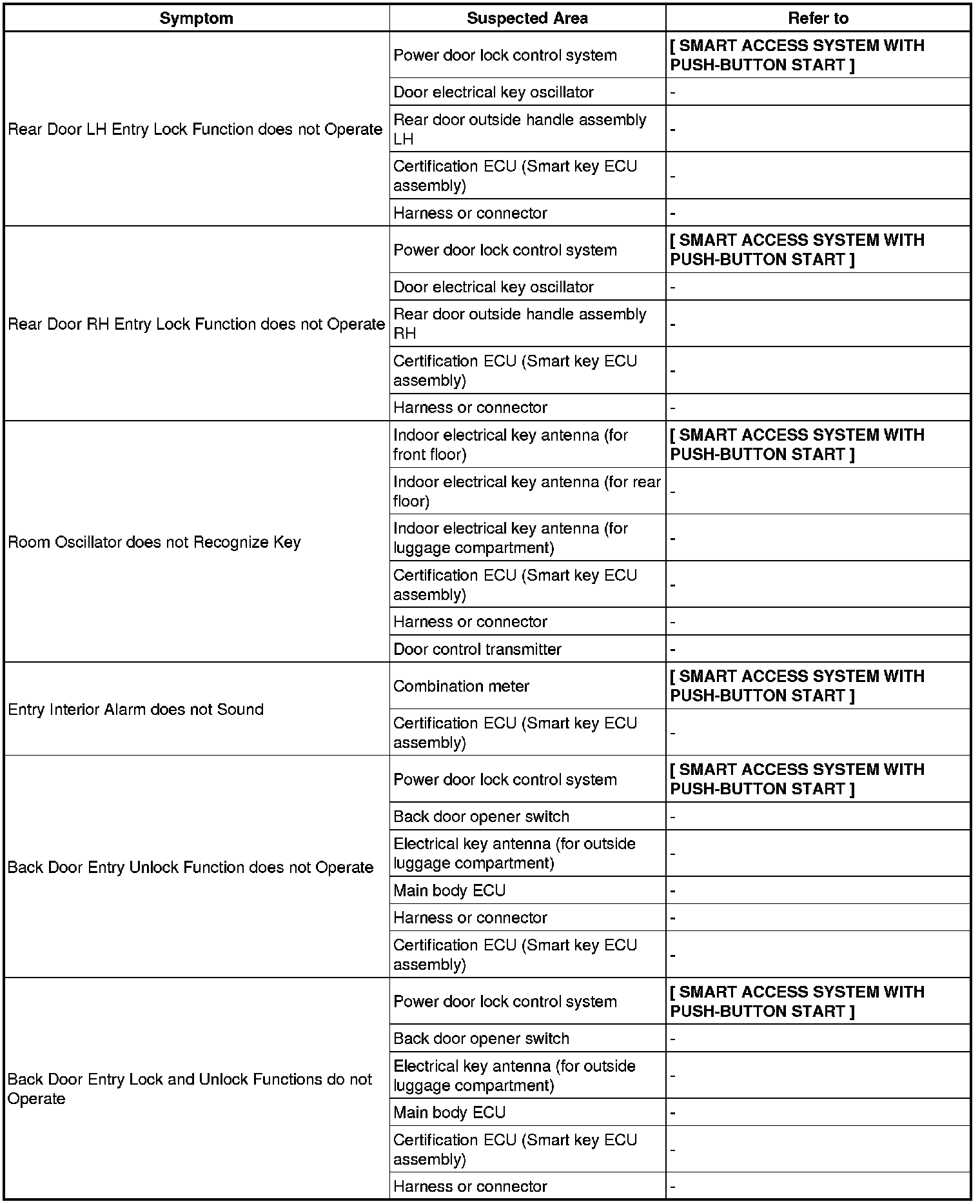 THEFT DETERRENT / KEYLESS ENTRY: SMART ACCESS SYSTEM WITH PUSH-BUTTON START (for Entry Function): PROBLEM SYMPTOMS TABLE