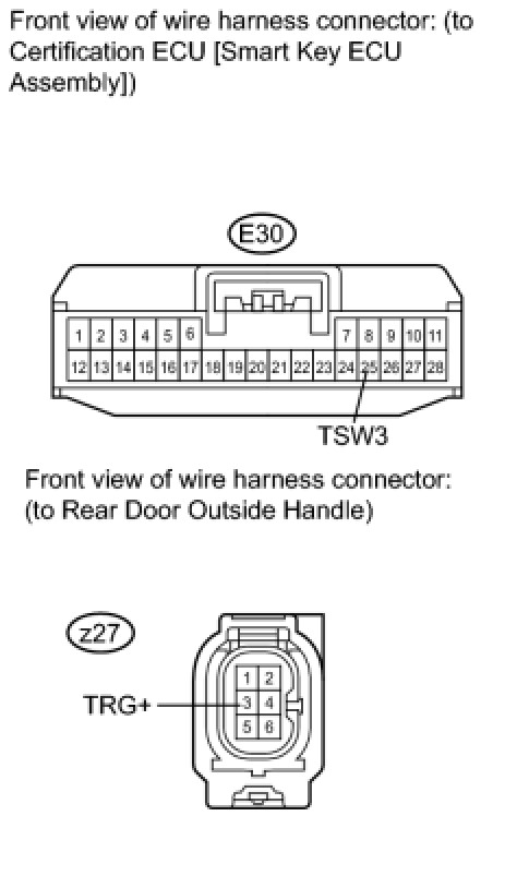 4. CHECK HARNESS AND CONNECTOR (CERTIFICATION ECU [SMART KEY ECU ASSEMBLY] - REAR DOOR OUTSIDE HANDLE)