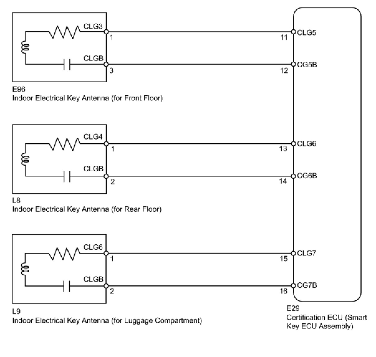 - If the buzzer does not sound for any indoor electrical key antennas, the certification ECU (smart key ECU assembly) circuit may have a malfunction.