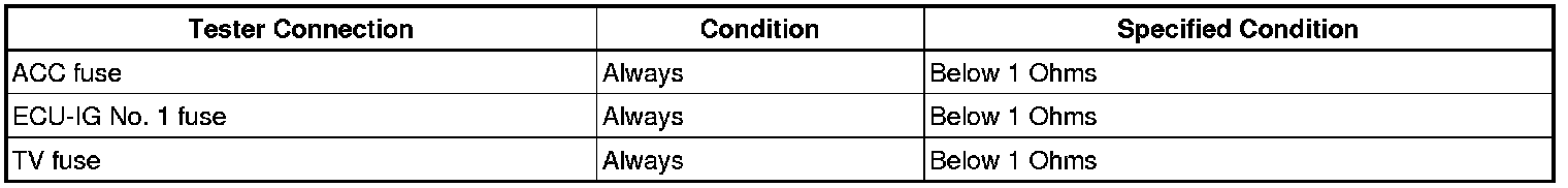 1. INSPECT FUSE (ACC, ECU-IG No. 1, TV)