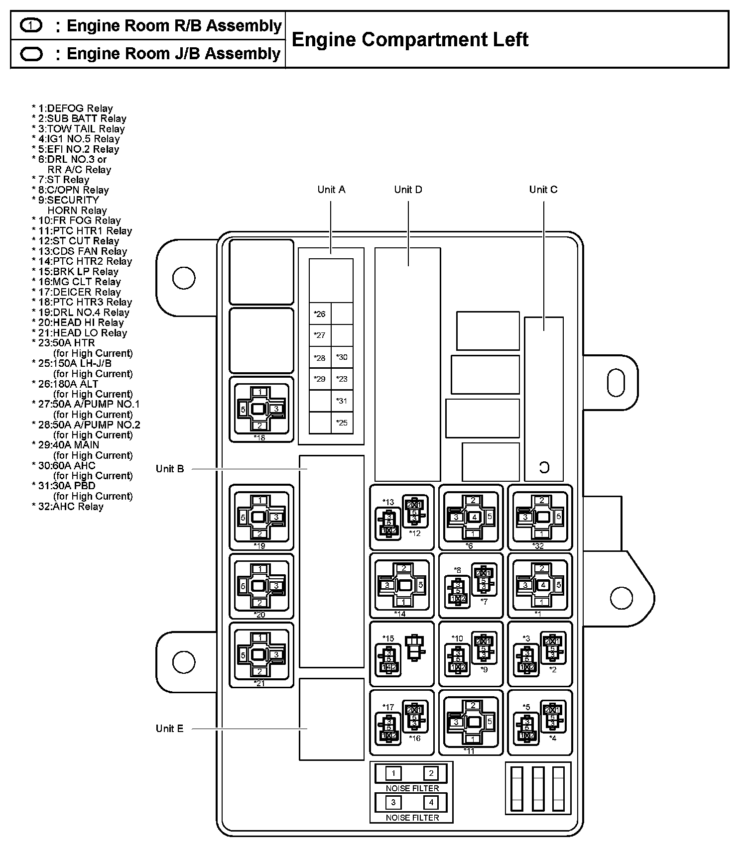 Engine Room R/B, J/B Assembly - Engine Compartment Left: