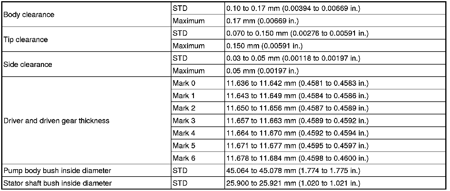 SPECIFICATIONS: AB60F AUTOMATIC TRANSMISSION / TRANSAXLE: SERVICE DATA