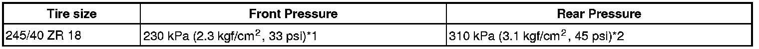 Standard cold tire inflation pressure: