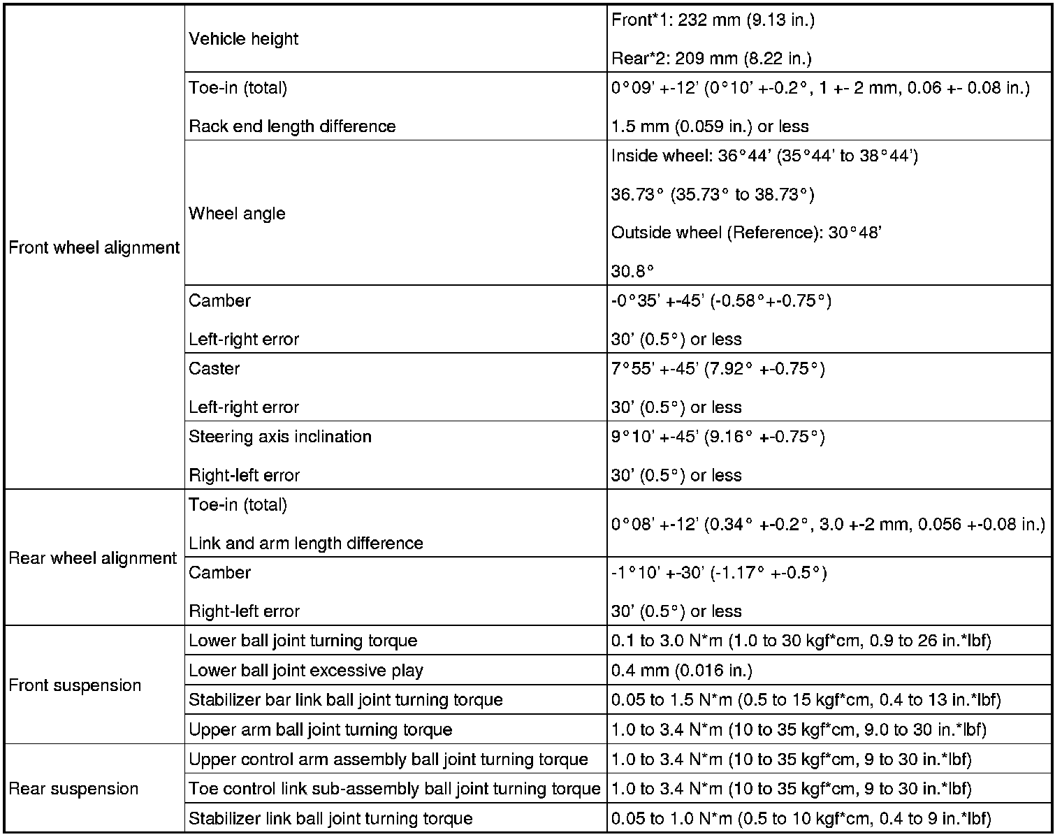 - *1: Measure the distance from the ground to the center of the lower suspension arm mounting bolt.