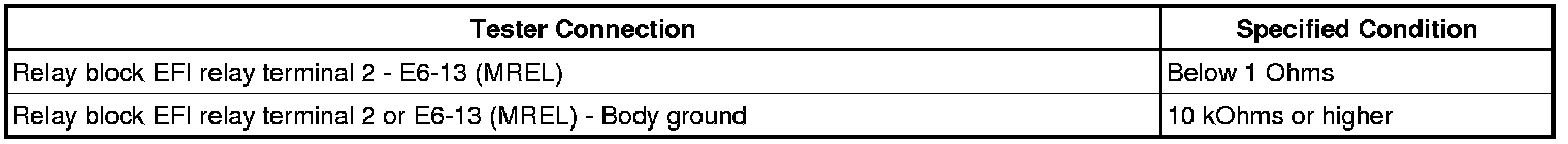 10. CHECK WIRE HARNESS (EFI RELAY (Marking: EFI) - ECM AND BODY GROUND)