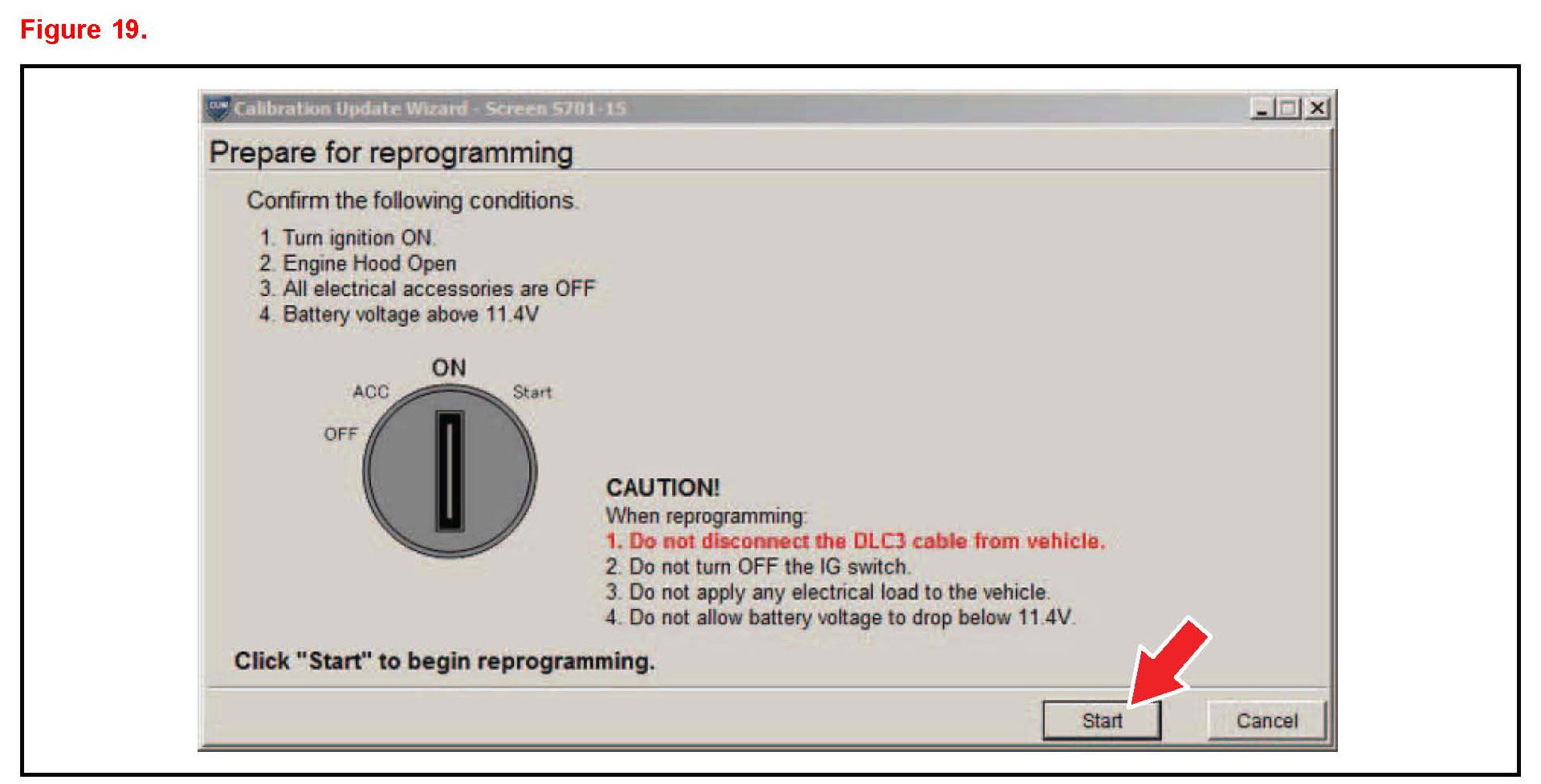 ^ Turn OFF all vehicle accessories (e.g. audio system, A/C, interior lights, DRL, etc.). Do NOT add to or significantly change the vehicle's electrical load while reprogramming.