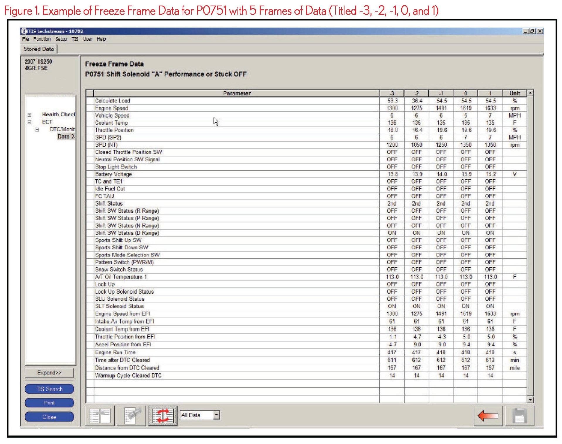 The DTC that is stored first will have 5 frames of Freeze Frame Data stored (see Figures 1 and 2).