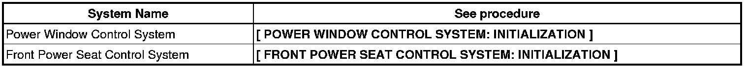 - Initialize the following systems after disconnecting and reconnecting the cable from the negative (-) battery terminal.