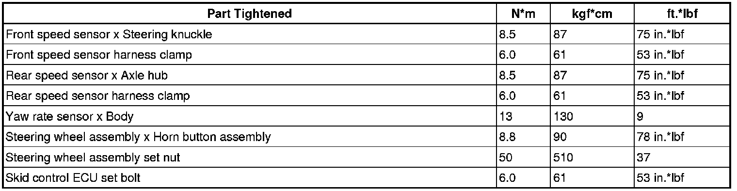 SERVICE SPECIFICATIONS: BRAKE CONTROL: TORQUE SPECIFICATIONS