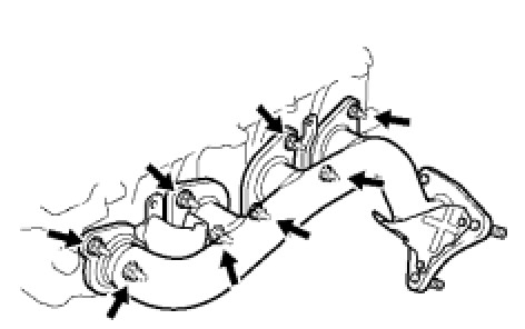 Install the exhaust manifold with the 8 nuts. Uniformly tighten the nuts in several passes.