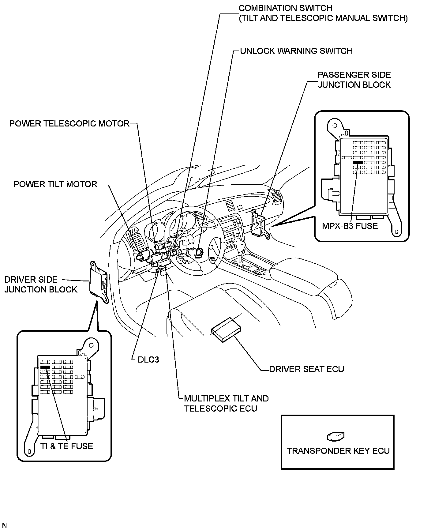 STEERING COLUMN: POWER TILT AND POWER TELESCOPIC STEERING COLUMN SYSTEM: PARTS LOCATION