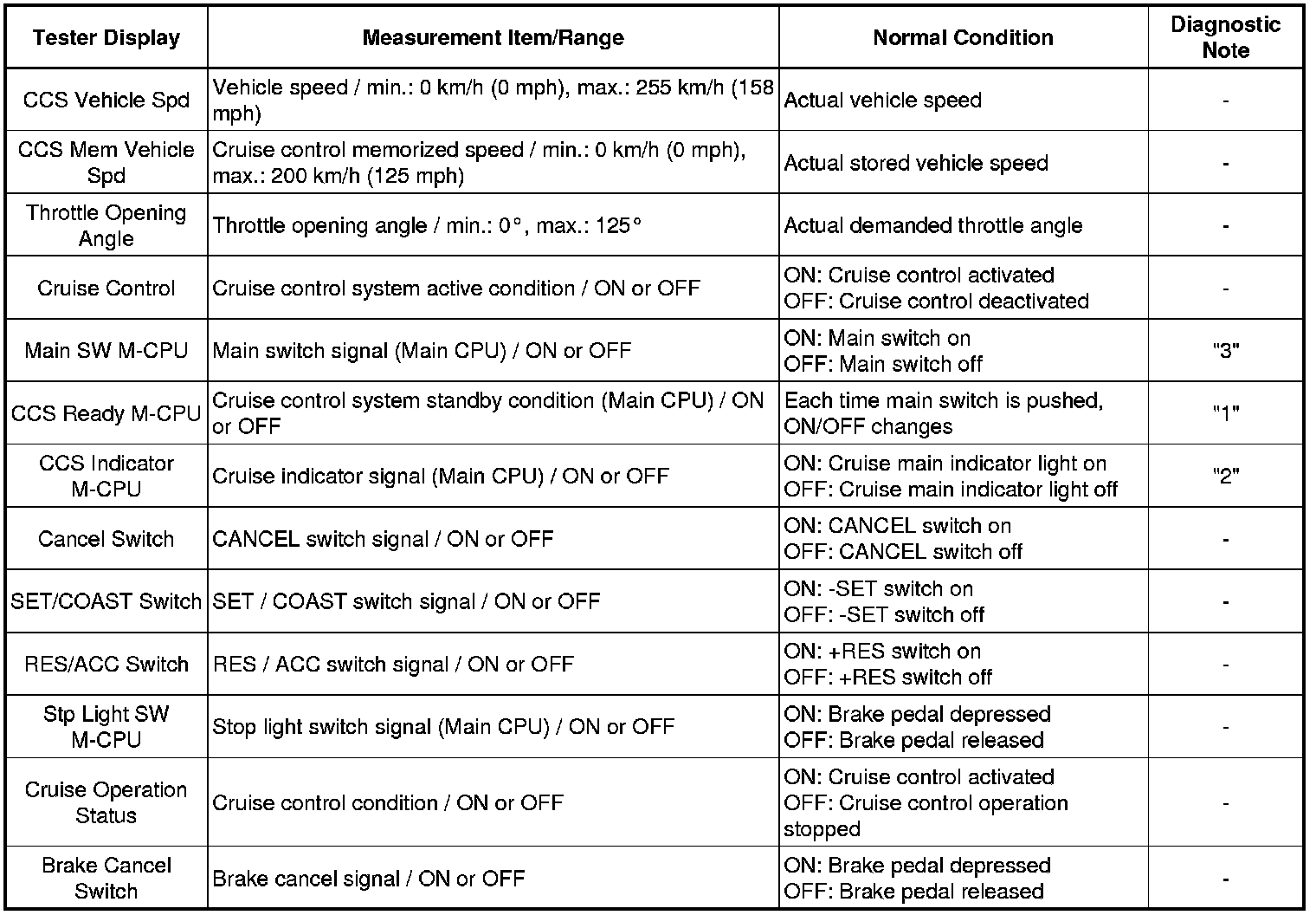 CRUISE CONTROL: CRUISE CONTROL SYSTEM: DATA LIST / ACTIVE TEST