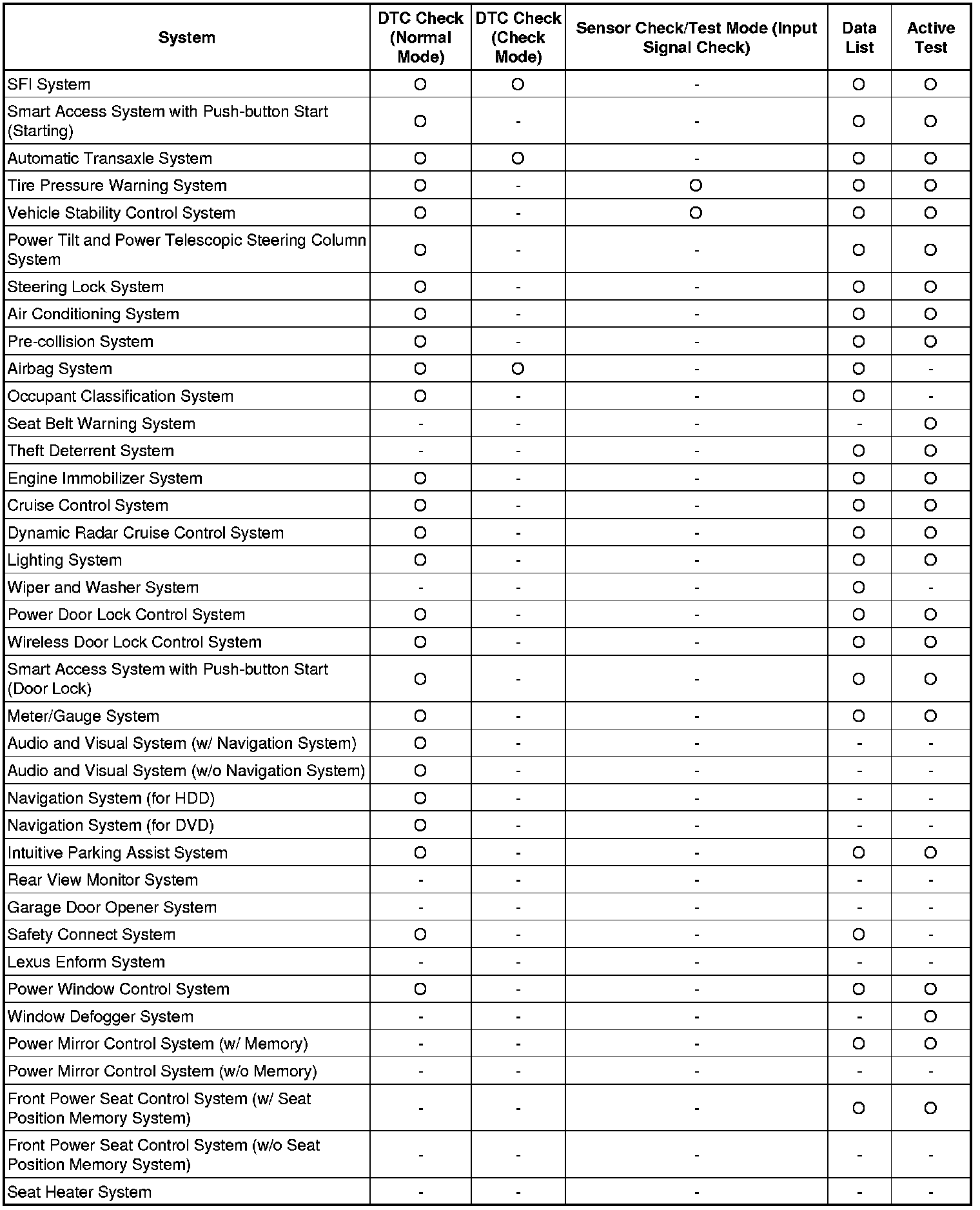* By using these functions, the problem areas can be narrowed down and troubleshooting is more effective. Diagnostic functions are incorporated in the following system in the LEXUS ES350.