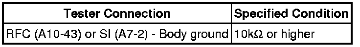 (c) Measure the resistance between terminals RFC (ECM) and SI (cooling fan ECU) of the wire harness side connectors.